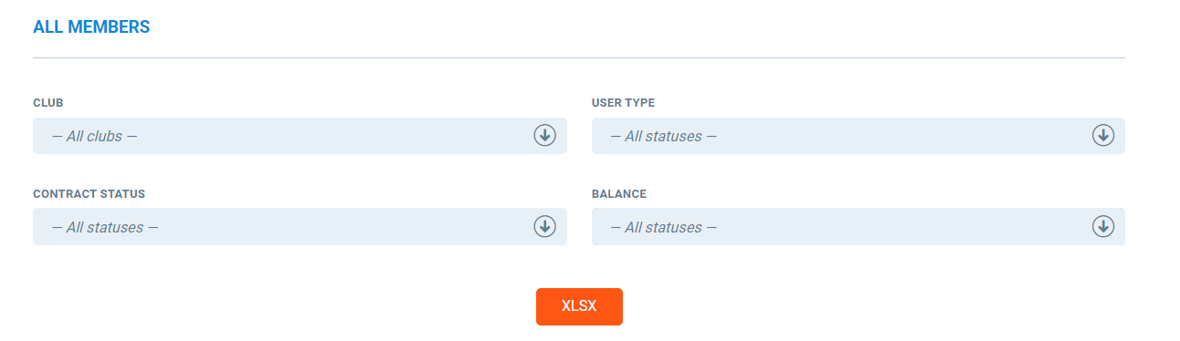Large Data Volume: Because this report pulls "All Members," it may contain thousands of rows. If the report loads slowly, try selecting a specific Club or User Type to reduce the data size.