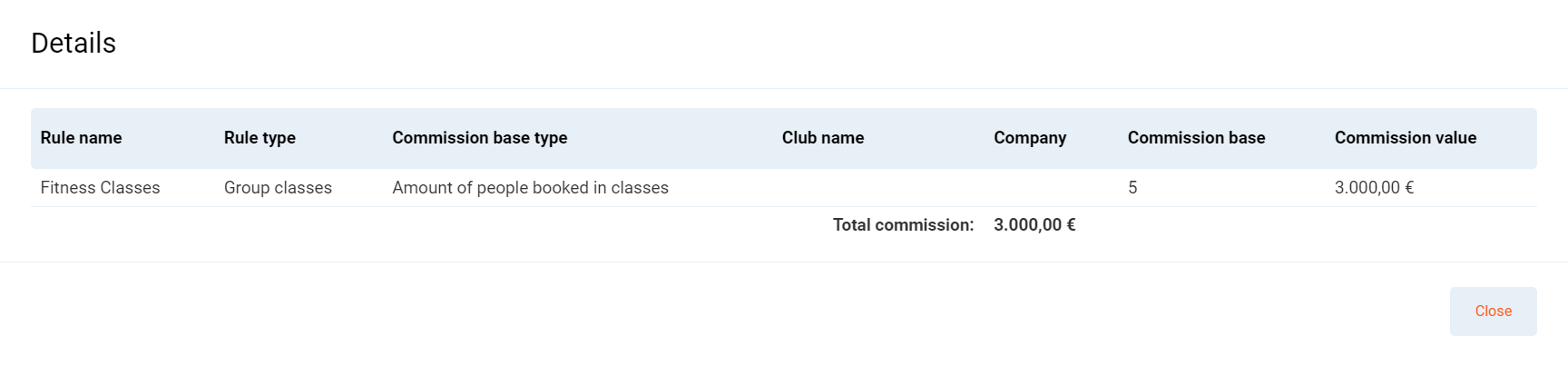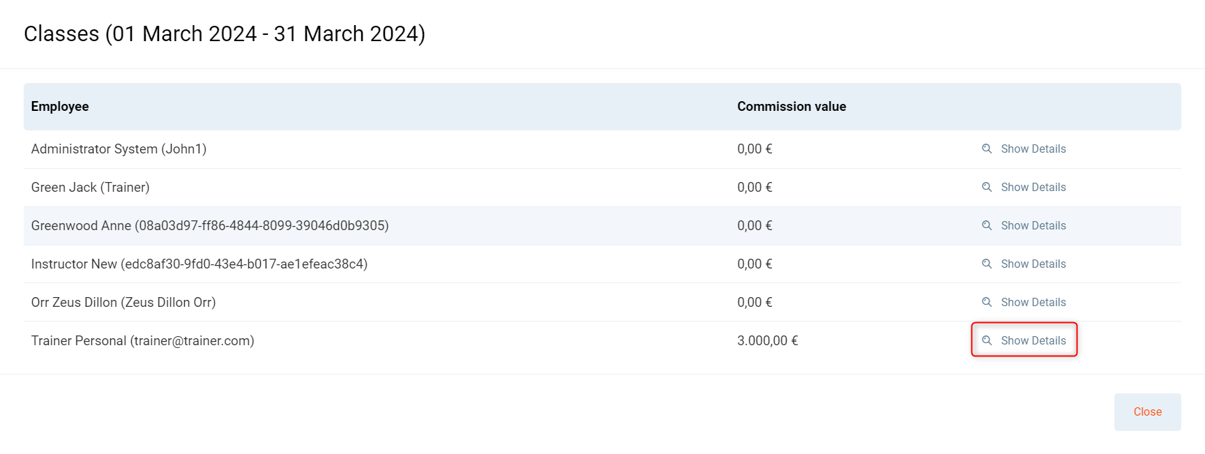 In the new pop-up window, you will see the list of employees who received a commission in a given period. To see more information about a specific person click on the Show details button.
