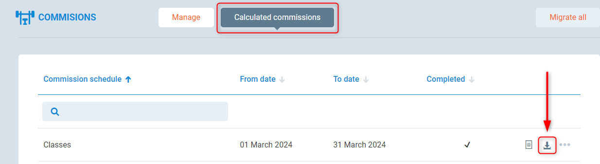 2. Click on Calculated Commissions and download file by clicking arrow icon next to appropriate Commission schedule name.