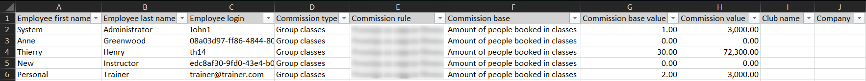 - Column E - Commission rule - the name of the rule entered to the system when configuring the commission.