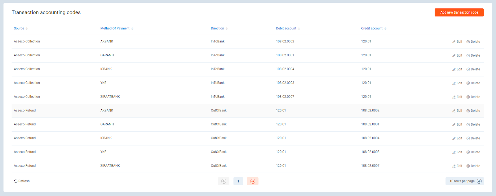 There are 2 types of schemes – for charges and corrections (Charge accounting codes) and for transactions (Transaction accounting codes) - both incoming and outcoming.