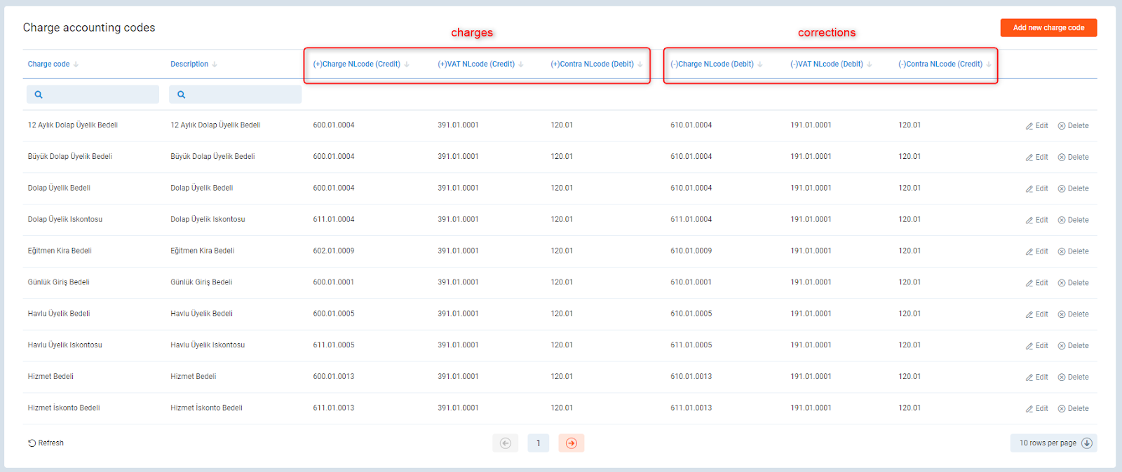 In Charge accounting codes there are 2 sides: for charges and for corrections.