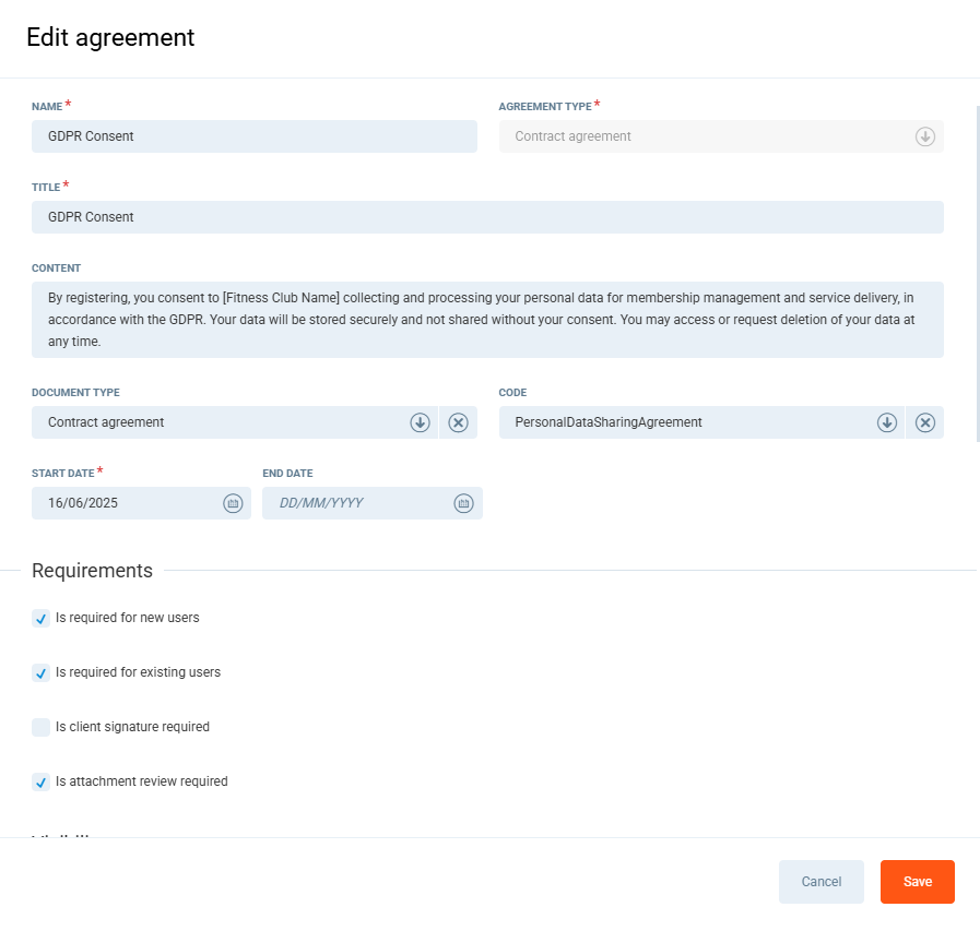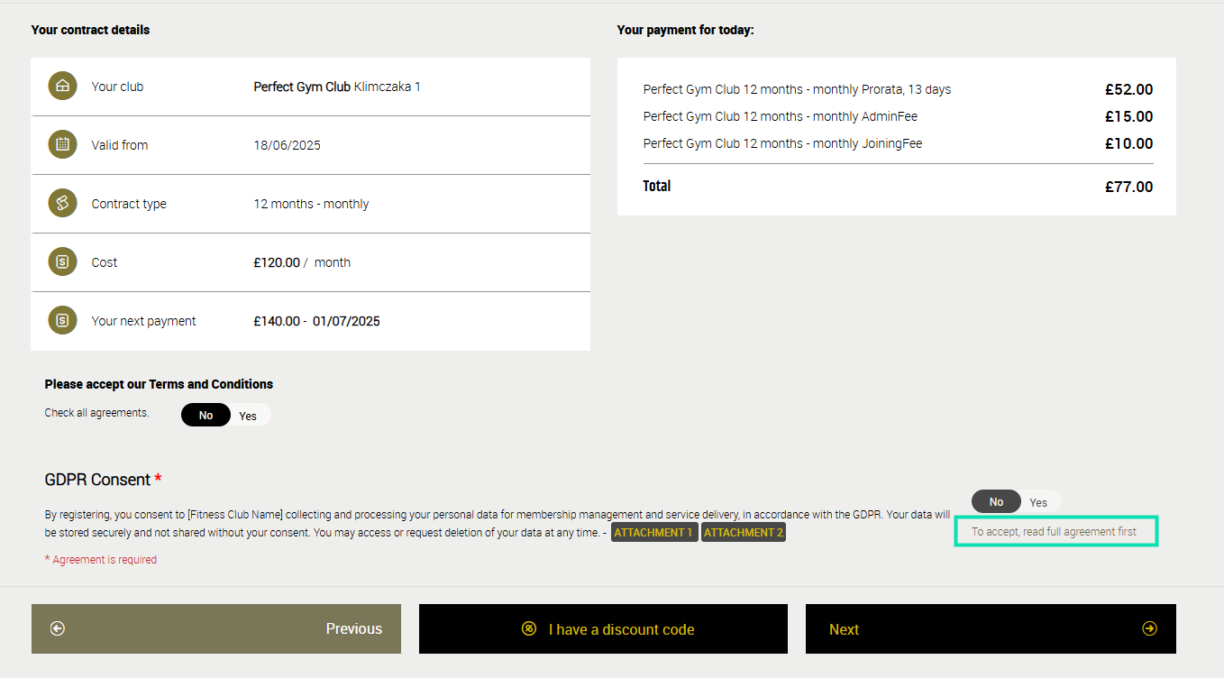 In this article, you will learn how to configure a User Agreement in Perfect Gym that requires members to review an attached document during the registration process in the Client Portal. This setup ensures that your new members are fully informed and have actively reviewed essential agreements before joining your club.