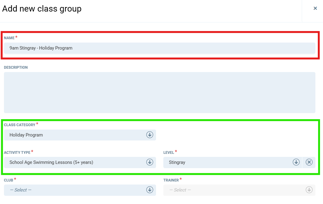 - Since the Holiday group has been created you can now set up individual classes within it. Ensure that Class Categories, Activity Categories/Levels, and Age Limits are consistent between the Class Type and the Group to avoid mismatches.