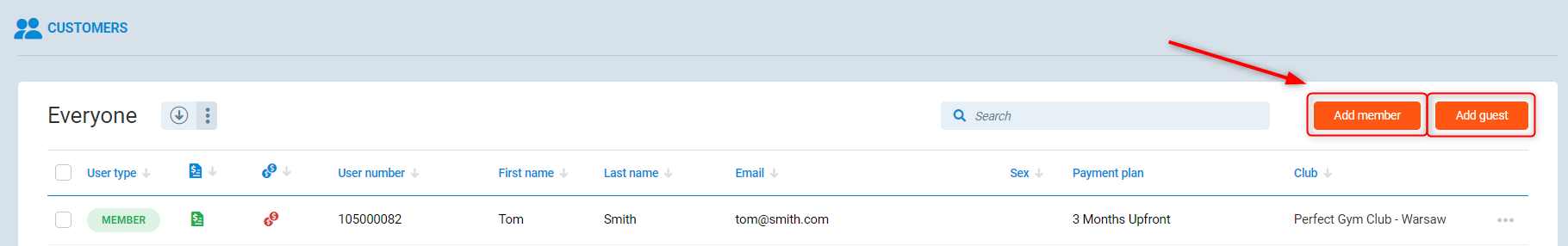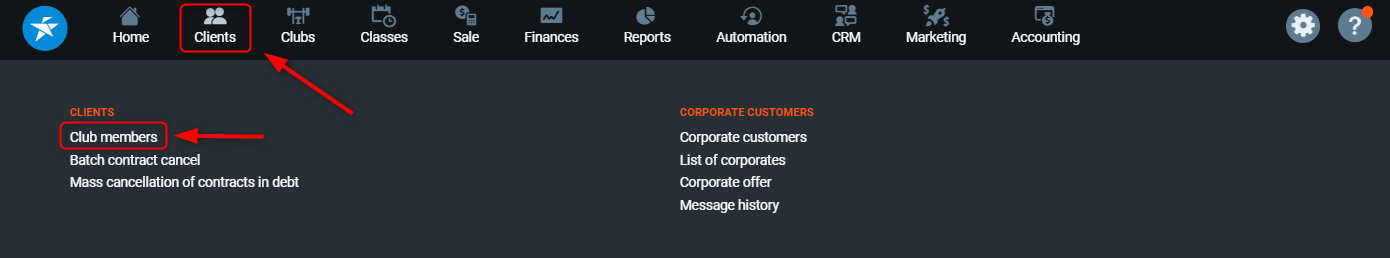 1. Go to PGM -> Clients -> Club members.