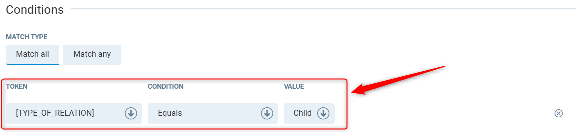 - Match all - notification will be sent to those recipients who meet all the conditions set up in this section.