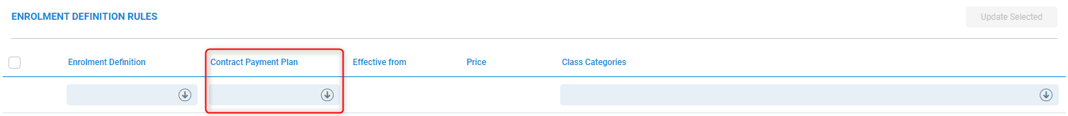 Contract Payment Plan - Choose the payment plans of the above enrolment rules you want to increase.