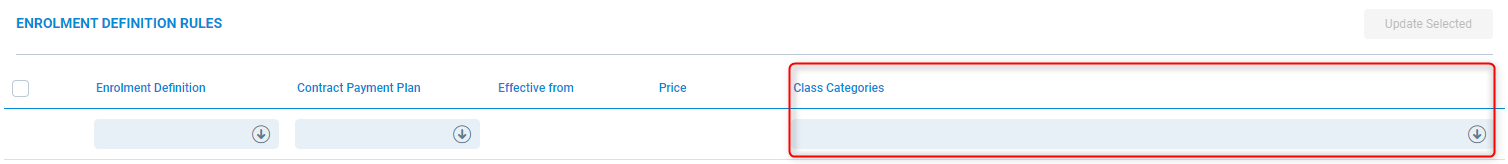 Class Categories - Choose the class categories of the above enrolment rules/payment plans you want to increase.