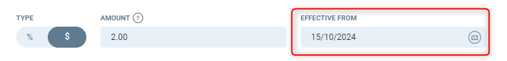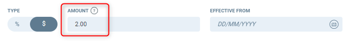 Amount - Enter in the increased amount or percentage that the price of the membership fee will be from the effective from date (E.g. increase by $2.00 or 3%).