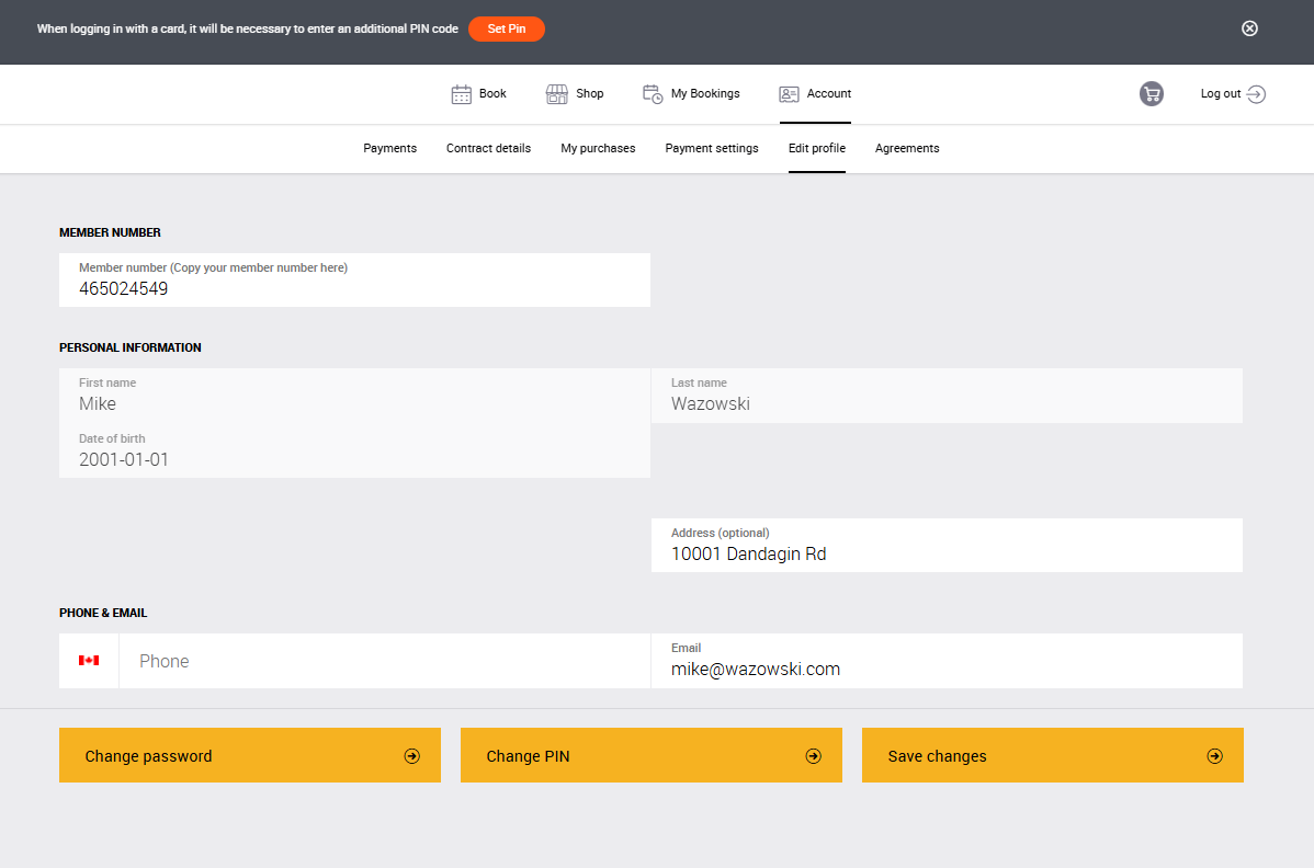 If a PIN is required, a notification will appear at the top of the Client Portal screen. Clicking on this notification will redirect you to the Change PIN screen.