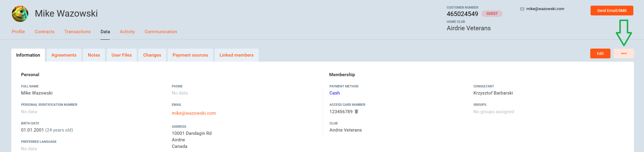 In PGM, navigate to the Clients tab and open the member's profile.