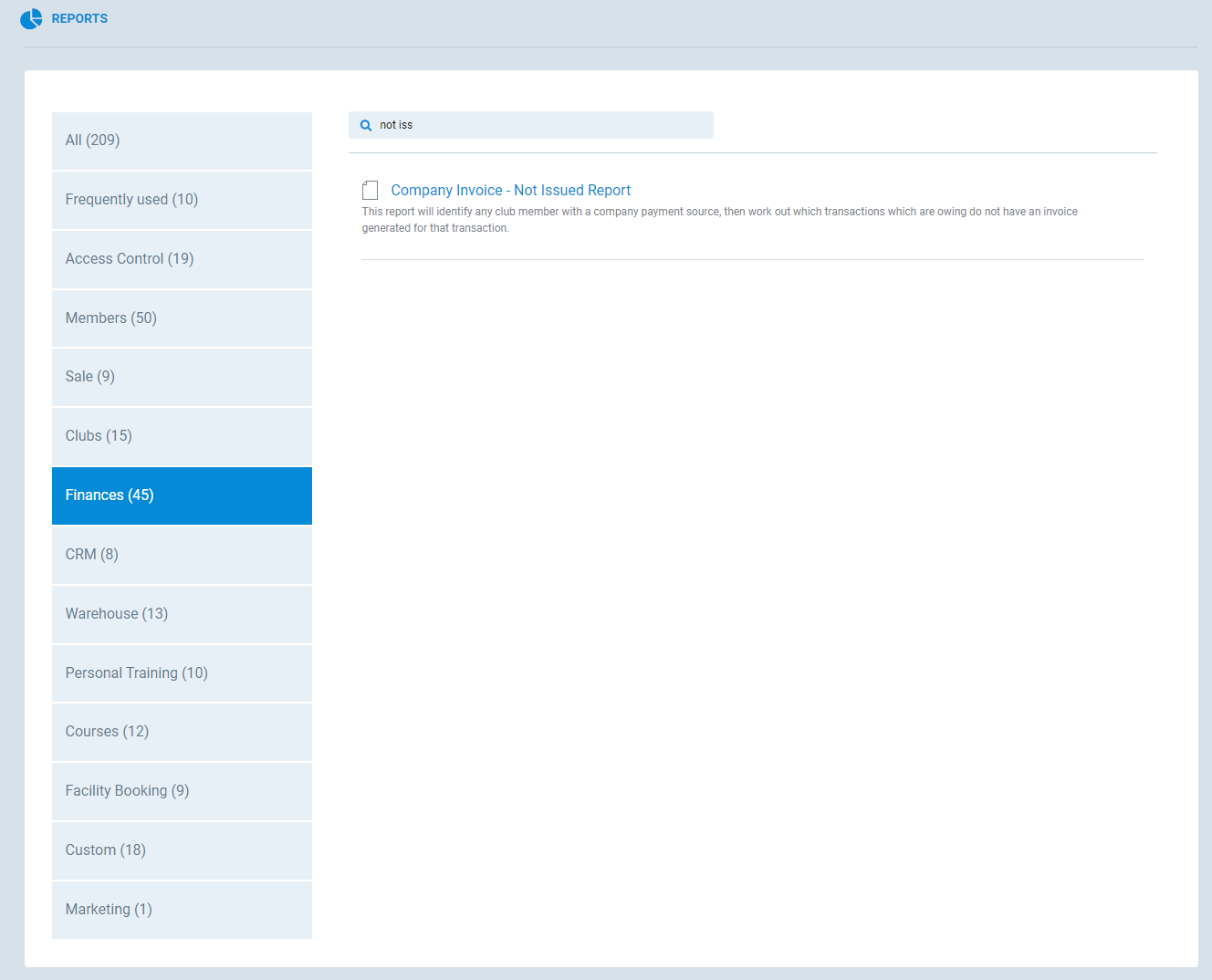 The report can be found in Finances Tab. Or search for the report Company Invoice - Not Issued Report.