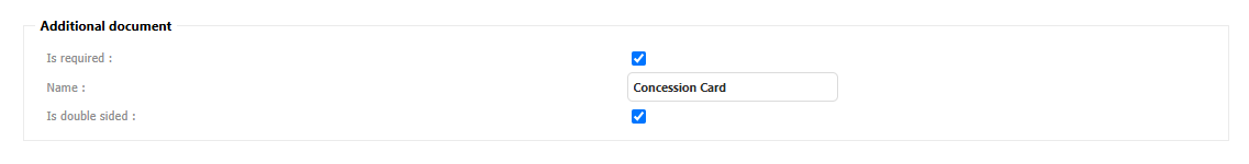 Name of the additional document is not case sensitive, but is whitespace sensitive. For example Concession Card will be treated as different document than ConcessionCard