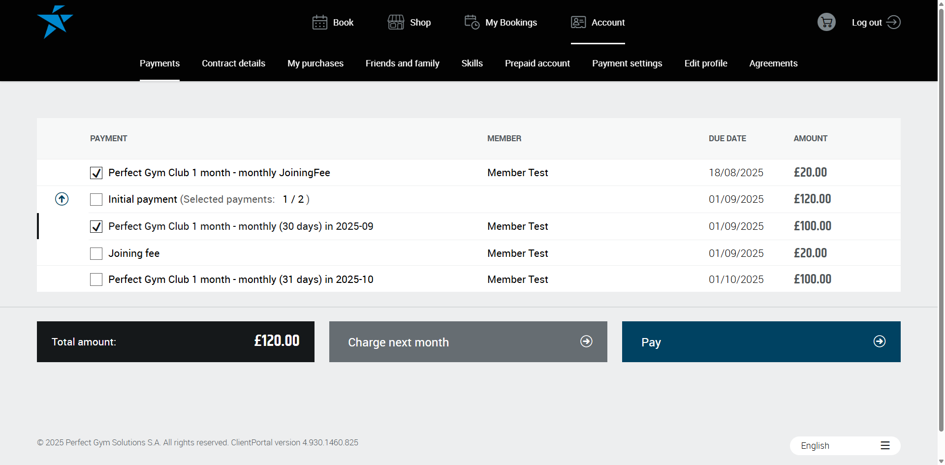 - If a member wants to pay for future transactions, they can use the Charge next month option. This will add the next upcoming transaction to their recurring payments.