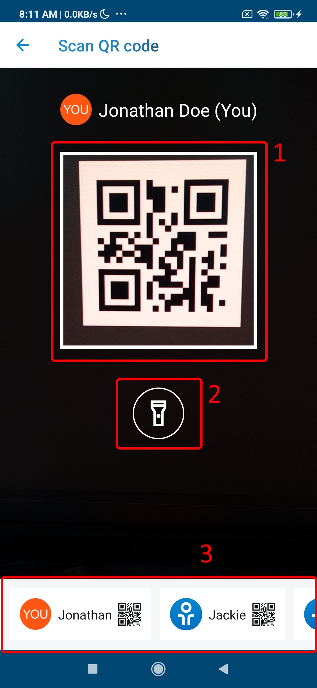 9. Scan the QR code with the selected profile active.
