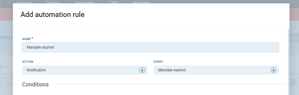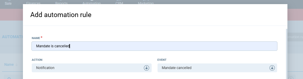 4. Save the rule. It will now run automatically whenever a mandate is cancelled.