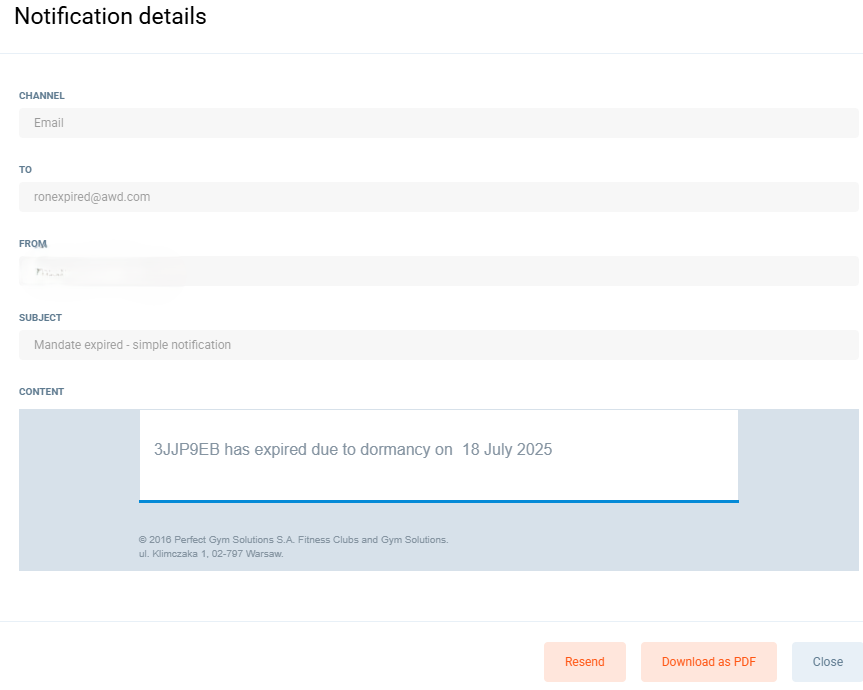 A mandate can also expire due to inactivity. When a mandate expires in GoCardless, similar actions occur in Perfect Gym: