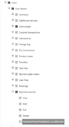 In the permissions tree, navigate to Users → User Details → Payment Sources.