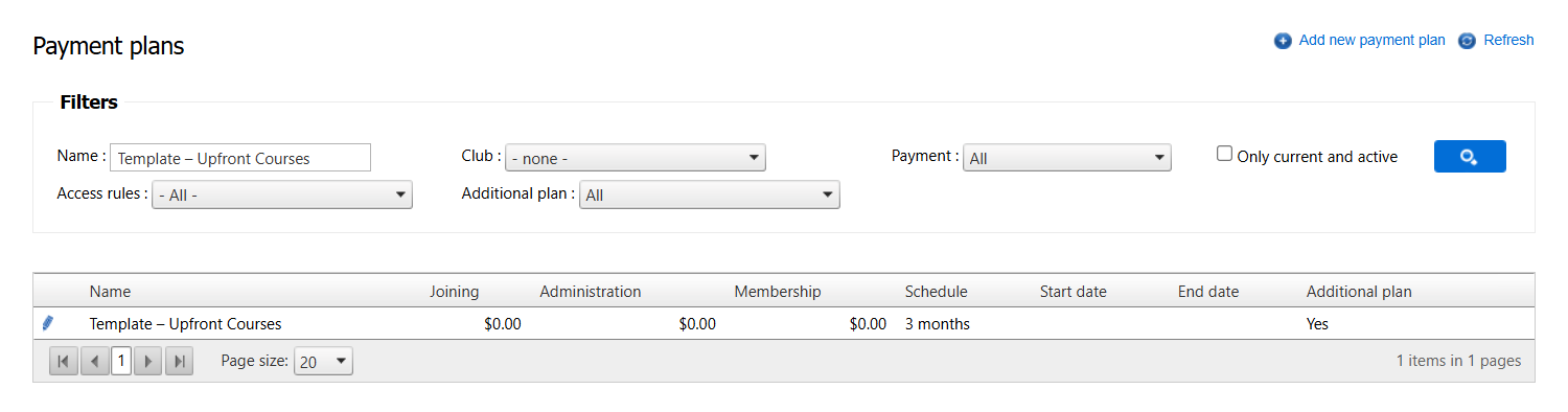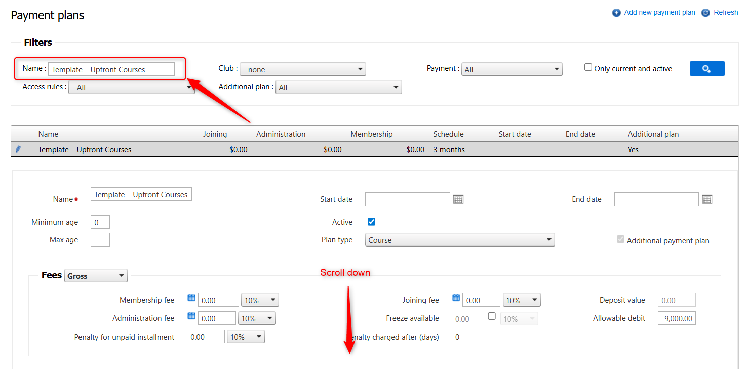 2. Find the payment plan template named Template - Upfront Courses or a similar existing plan you wish to copy.