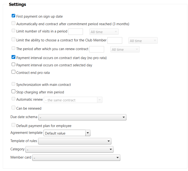 - First payment on sign up date - This will move the first membership fee to the sign up date, forcing the club member to have their payment due on the sign up date.
