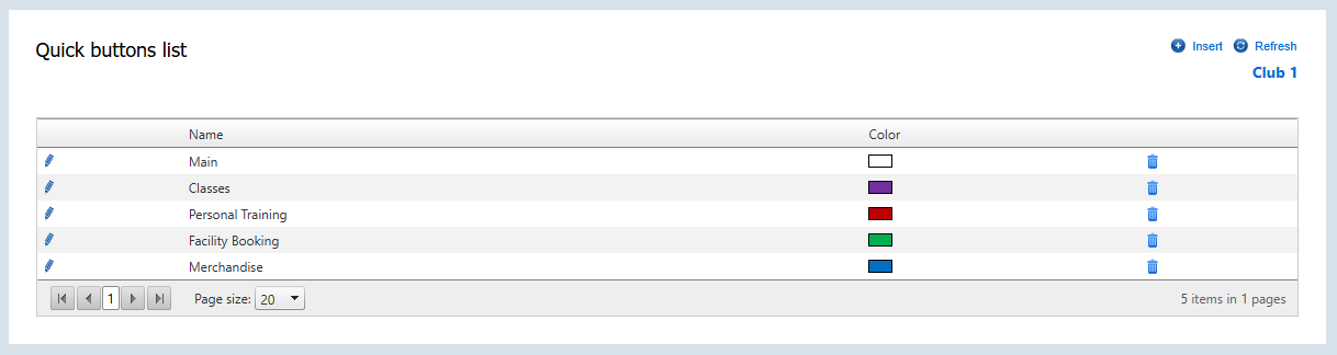 To add a new button, click the Insert button located in the command bar above the grid. To modify an existing button, click the Edit icon (pencil) next to the desired row.