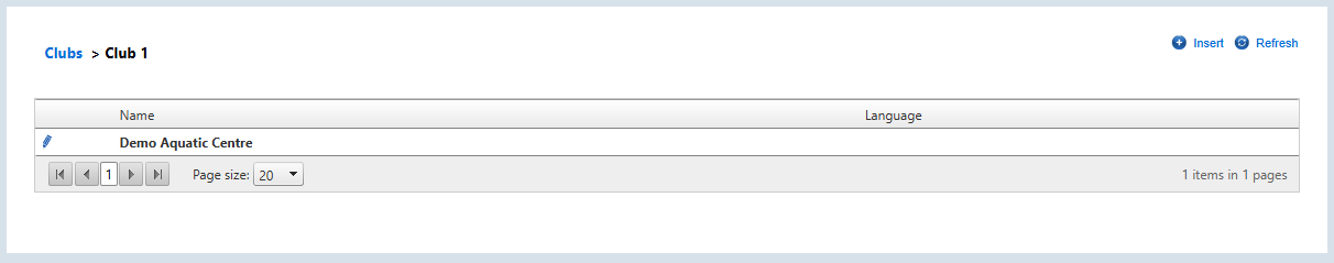 To edit an existing entry, locate the club row in the grid and click the Edit icon (pencil). To create a new entry, use the insert function if available on the grid header.