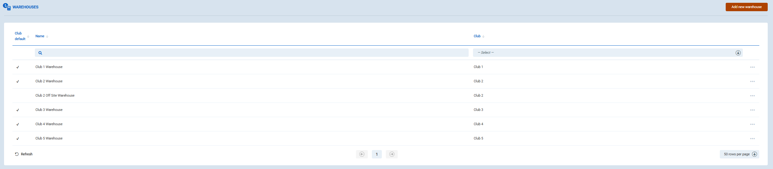 Club default: Check this box if this warehouse should be the default for the selected club.